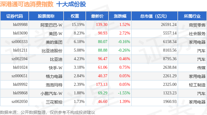 证券之星消息,12月10日,深港通可选消费(983019)指数报收于5643.88点,涨0.52%,成交1160.01亿元,换手率1.78%。当日该指数成份股中,上涨的有188家,博纳影业以10.05%的涨幅领涨,下跌的有112家,南山智尚以10.86%的跌幅领跌。