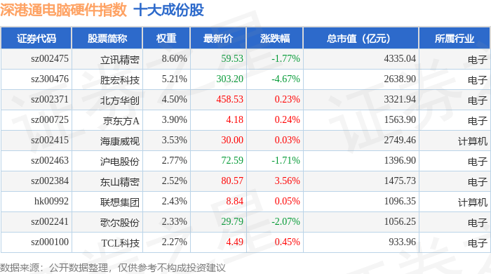 深港通电脑硬件(983043)指数十大成份股详情如下: