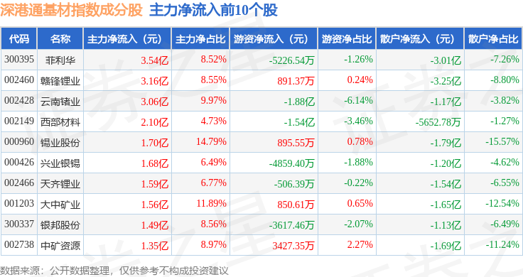 资金流向方面,深港通基材(983061)指数成份股当日主力资金净流入合计13.71亿元,游资资金净流出合计6580.03万元,散户资金净流出合计13.05亿元。成份股资金流向详情见下表: