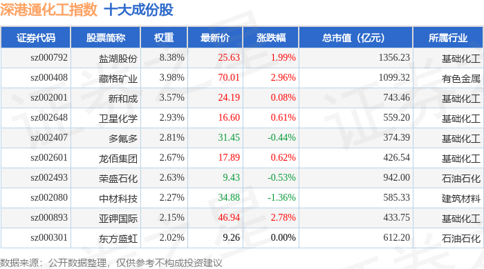 深港通化工(983063)指数十大成份股详情如下: