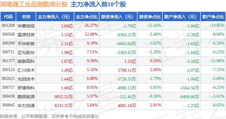 资金流向方面,深港通工业品(983069)指数成份股当日主力资金净流出合计54.77亿元,游资资金净流入合计5.29亿元,散户资金净流入合计49.47亿元。成份股资金流向详情见下表: