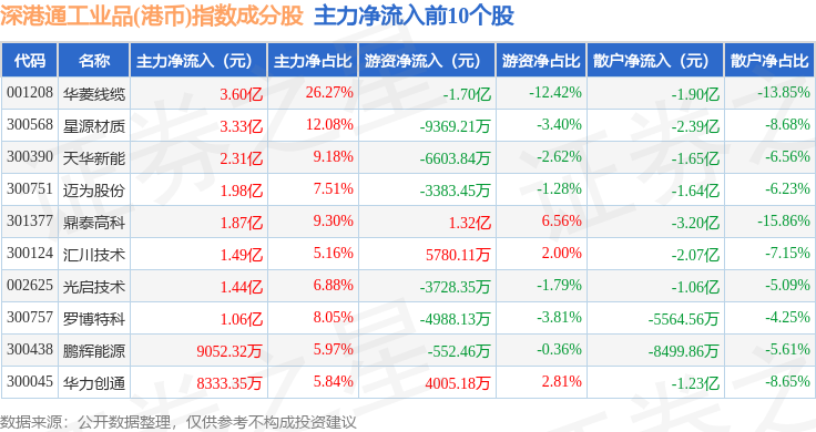 资金流向方面,深港通工业品(港币)(983070)指数成份股当日主力资金净流出合计54.77亿元,游资资金净流入合计5.29亿元,散户资金净流入合计49.47亿元。成份股资金流向详情见下表: