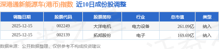 近10日内深港通新能源车(港币)(983088)指数成份股做了调整,新纳入了2只股票。