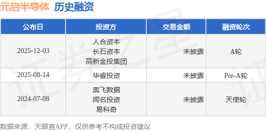 证券之星消息,根据天眼查APP于12月3日公布的信息整理,元启半导体(杭州)有限公司A轮融资,融资额未披露,参与投资的机构包括人合资本,长石资本,高新金投集团。