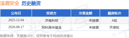 证券之星消息,根据天眼查APP于12月4日公布的信息整理,山东泽鹿安全技术有限公司A轮融资,融资额未披露,参与投资的机构包括济南科投。