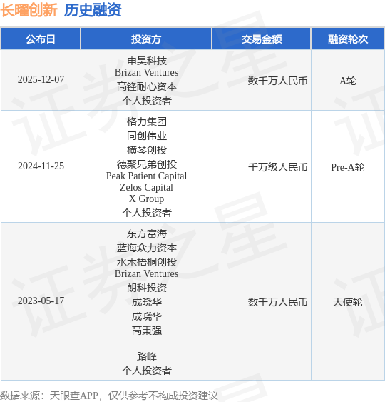 证券之星消息,根据天眼查APP于12月7日公布的信息整理,广东长曜创新科技有限公司A轮融资,融资额数千万人民币,参与投资的机构包括申昊科技,Brizan Ventures,高锋耐心资本,个人投资者。