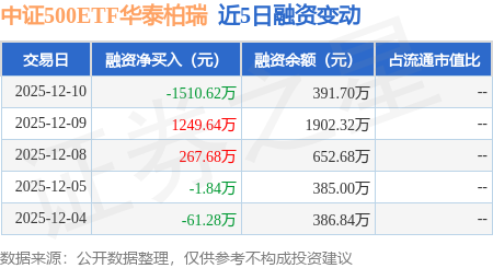 证券之星消息,12月10日,中证500ETF华泰柏瑞(512510)融资买入124.23万元,融资偿还1634.86万元,融资净卖出1510.62万元,融资余额391.7万元。