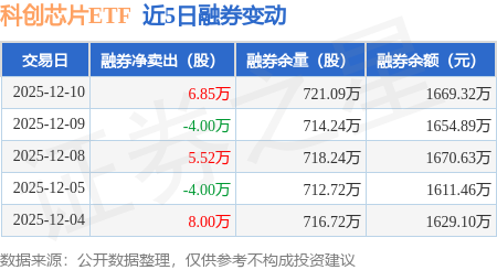 证券之星消息,12月10日,科创芯片ETF(588200)融资买入2.3亿元,融资偿还2.45亿元,融资净卖出1547.14万元,融资余额22.14亿元。