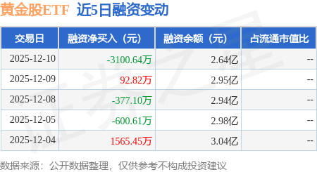 证券之星消息,12月10日,黄金股ETF(517520)融资买入738.66万元,融资偿还3839.3万元,融资净卖出3100.64万元,融资余额2.64亿元。