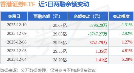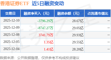 证券之星消息,12月10日,香港证券ETF(513090)融资买入9.61亿元,融资偿还9.99亿元,融资净卖出3796.29万元,融资余额28.67亿元。