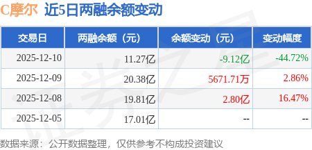 证券之星消息,12月10日,C摩尔(688795)融资买入8.1亿元,融资偿还17.21亿元,融资净卖出9.12亿元,融资余额11.27亿元。