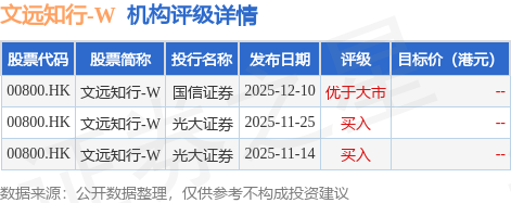 投行对该股的评级以买入为主,近90天内共有2家投行给出买入评级。国信证券最新一份研报给予文远知行-W优于大市评级。
