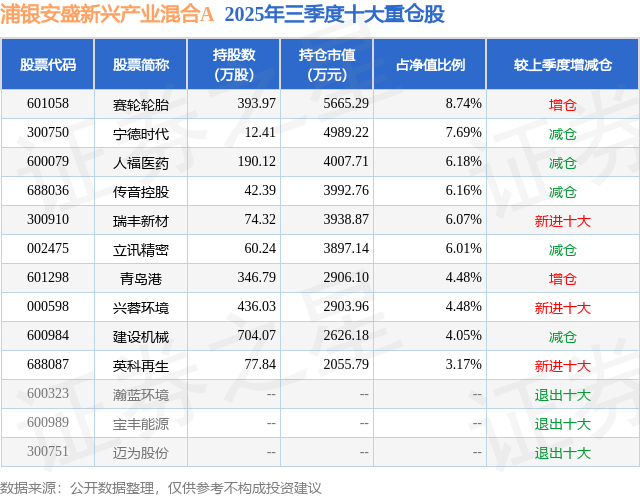 根据2025基金Q3季报公募基金重仓股数据,重仓该股的公募基金共1家,其中持有数量最多的公募基金为浦银安盛基金的浦银安盛新兴产业混合A。浦银安盛新兴产业混合A目前规模为3.6亿元,最新净值4.3356(12月10日),较上一交易日上涨1.0%,近一年上涨25.68%。该公募基金现任基金经理为李浩玄。李浩玄在任的基金产品包括:浦银安盛科技创新一年持有混合A,管理时间为2022年12月21日至今,期间收益率为60.16%;浦银安盛高端装备混合A,管理时间为2024年3月28日至今,期间收益率为106.65%;浦银安盛先进制造混合A,管理时间为2024年9月13日至今,期间收益率为56.2%。