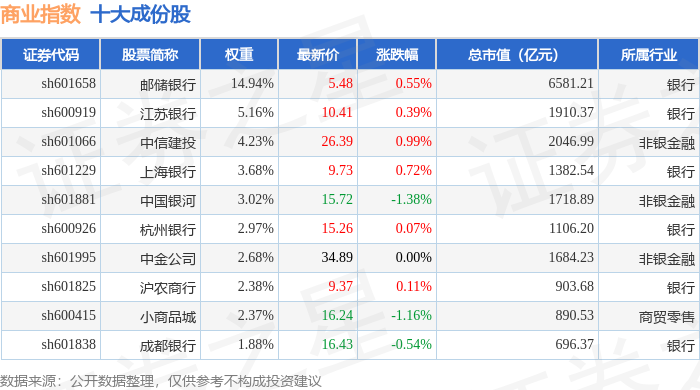 商业指数(000005)十大成份股详情如下: