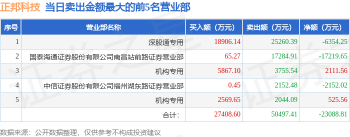 证券之星消息,沪深交易所2025年12月11日公布的交易公开信息显示,正邦科技(002157)因日涨幅偏离值达到7%的前5只证券登上龙虎榜。此次是近5个交易日内第1次上榜。