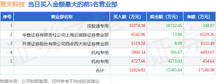 证券之星消息,沪深交易所2025年12月11日公布的交易公开信息显示,普天科技(002544)因日涨幅偏离值达到7%的前5只证券登上龙虎榜。此次是近5个交易日内第1次上榜。