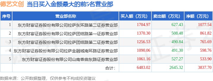 证券之星消息,沪深交易所2025年12月11日公布的交易公开信息显示,德艺文创(300640)因日换手率达到30%的前5只证券登上龙虎榜。此次是近5个交易日内第3次上榜。