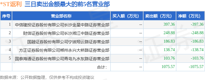 证券之星消息,沪深交易所2025年12月11日公布的交易公开信息显示,*ST返利(600228)因ST、*ST证券连续三个交易日内收盘价格跌幅偏离值累计达到12%的证券登上龙虎榜。此次是近5个交易日内第2次上榜。