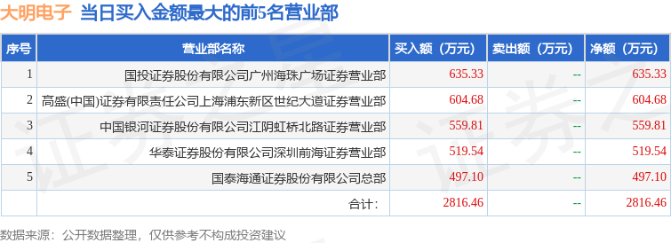 证券之星消息,沪深交易所2025年12月11日公布的交易公开信息显示,大明电子(603376)因有价格涨跌幅限制的日换手率达到20%的前五只证券登上龙虎榜。此次是近5个交易日内第3次上榜。
