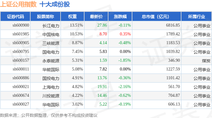 证券之星消息,12月11日,上证公用(000041)指数报收于2596.3点,跌0.19%,成交104.98亿元,换手率0.68%。当日该指数成份股中,上涨的有8家,九丰能源以3.12%的涨幅领涨,下跌的有19家,上海电力以2.16%的跌幅领跌。
