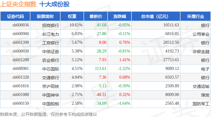 近10日内上证央企(000042)指数成份股做了调整,新纳入了2只股票,剔除了1只股票。