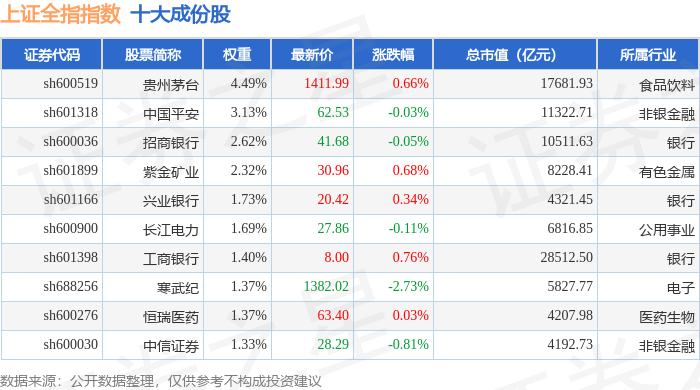 上证全指(000047)指数十大成份股详情如下: