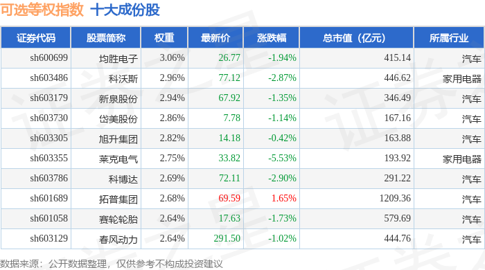 可选等权(000073)指数十大成份股详情如下: