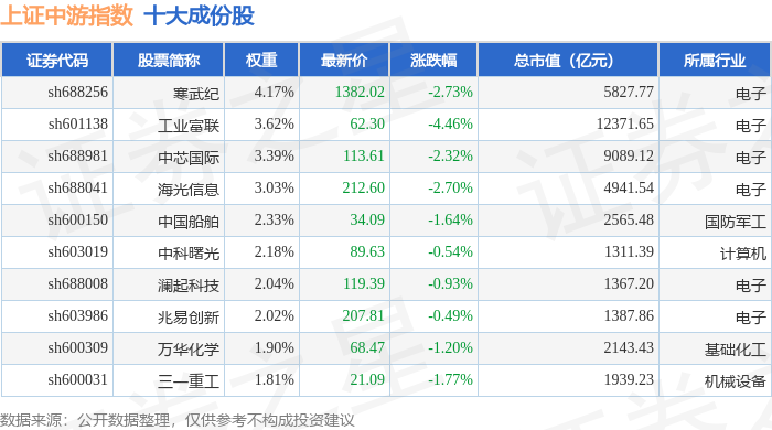 证券之星消息,12月11日,上证中游(000095)指数报收于3730.88点,跌1.14%,成交1983.99亿元,换手率1.23%。当日该指数成份股中,上涨的有47家,中科飞测以7.95%的涨幅领涨,下跌的有147家,金盘科技以5.92%的跌幅领跌。