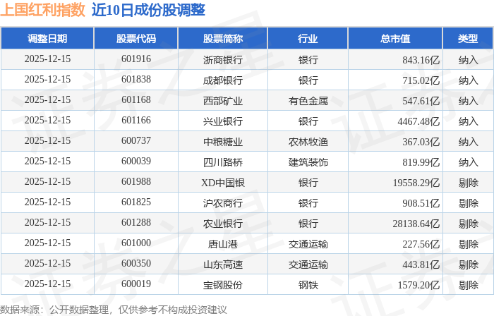 近10日内上国红利(000151)指数成份股做了调整,新纳入了6只股票,剔除了6只股票。