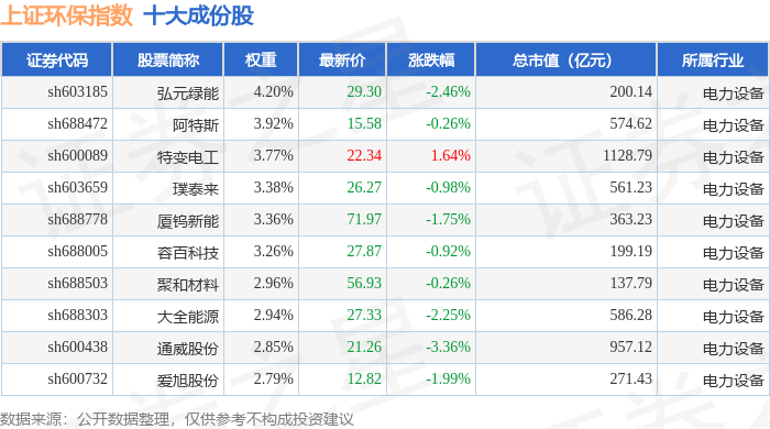 上证环保(000158)指数十大成份股详情如下: