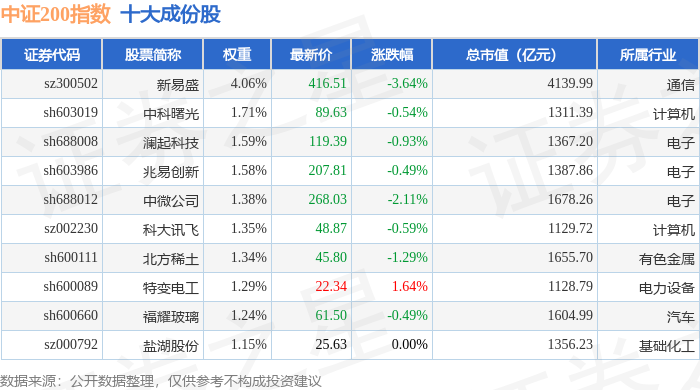 资金流向方面,中证200(000904)指数成份股当日主力资金净流出合计126.91亿元,游资资金净流入合计34.24亿元,散户资金净流入合计92.67亿元。成份股资金流向详情见下表: