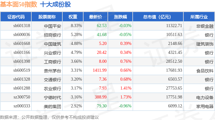 证券之星消息,12月11日,基本面50(000925)指数报收于4585.42点,跌0.18%,成交796.85亿元,换手率0.28%。当日该指数成份股中,上涨的有23家,宁德时代以1.73%的涨幅领涨,下跌的有26家,工业富联以4.46%的跌幅领跌。