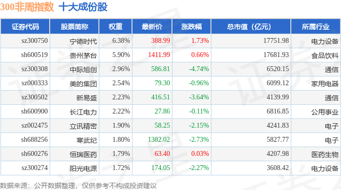 300非周(000969)指数十大成份股详情如下: