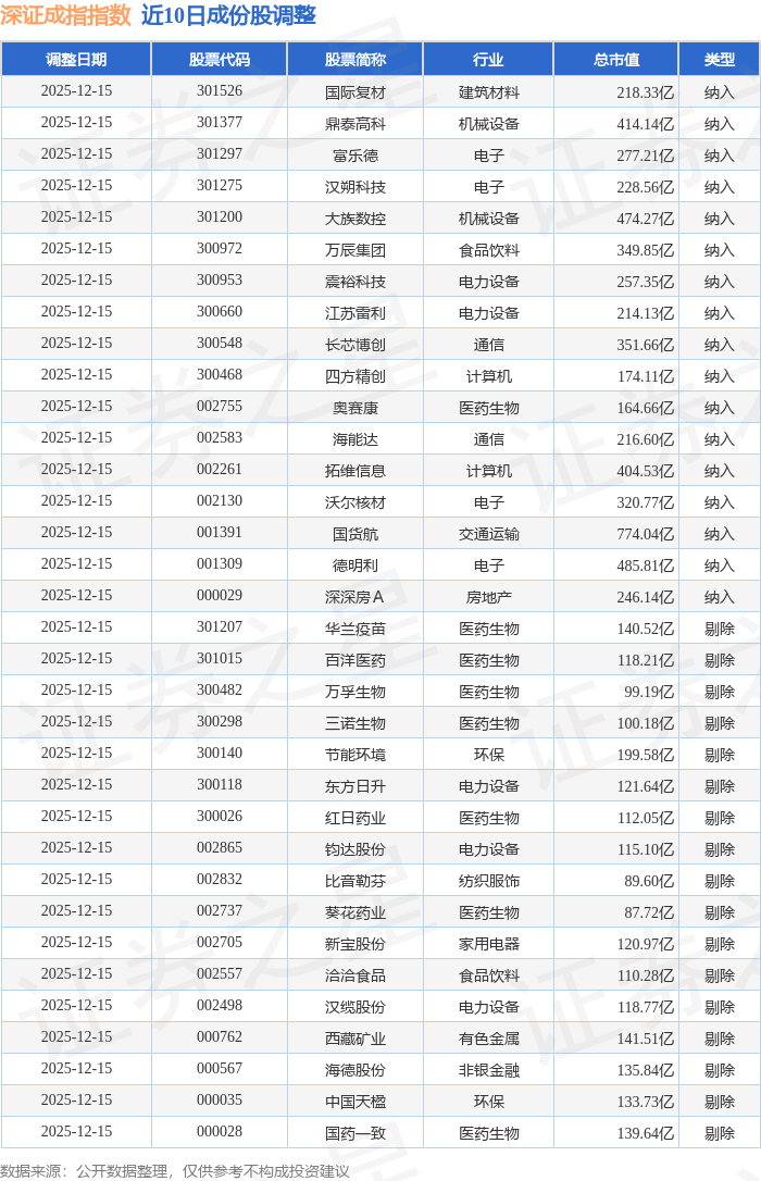 近10日内深证成指(399001)指数成份股做了调整,新纳入了17只股票,剔除了17只股票。