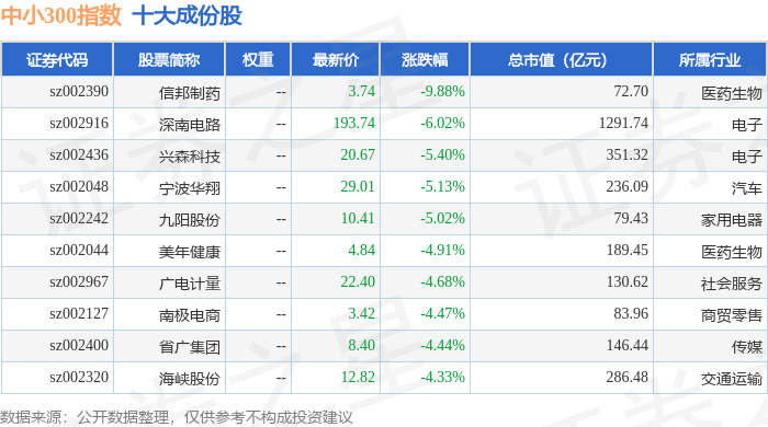 证券之星消息,12月11日,中小300(399008)指数报收于1588.33点,跌1.16%,成交1840.89亿元,换手率1.95%。当日该指数成份股中,上涨的有45家,普天科技以10.0%的涨幅领涨,下跌的有251家,信邦制药以9.88%的跌幅领跌。