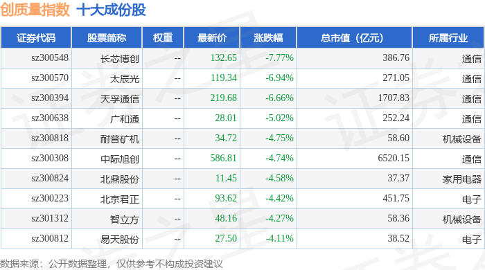 近10日内创质量(399269)指数成份股做了调整,新纳入了20只股票,剔除了20只股票。