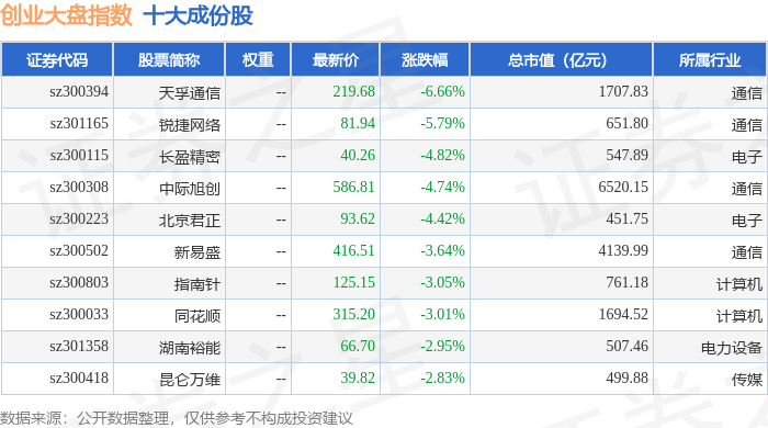 证券之星消息,12月11日,创业大盘(399293)指数报收于6443.09点,跌1.87%,成交1530.39亿元,换手率2.12%。当日该指数成份股中,上涨的有6家,迈为股份以12.82%的涨幅领涨,下跌的有44家,天孚通信以6.66%的跌幅领跌。