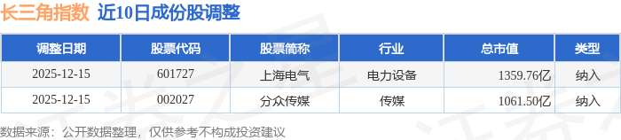 近10日内长三角(399355)指数成份股做了调整,新纳入了2只股票。
