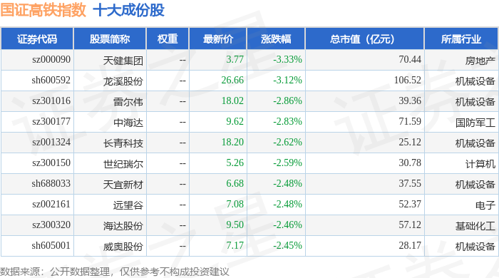 国证高铁(399419)指数十大成份股详情如下:
