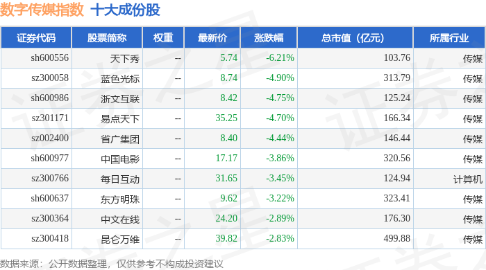 近10日内数字传媒(399434)指数成份股做了调整,新纳入了1只股票。