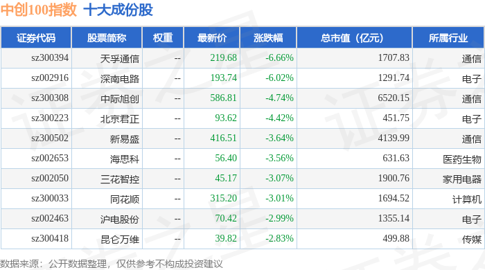 近10日内中创100(399612)指数成份股做了调整,新纳入了3只股票,剔除了3只股票。