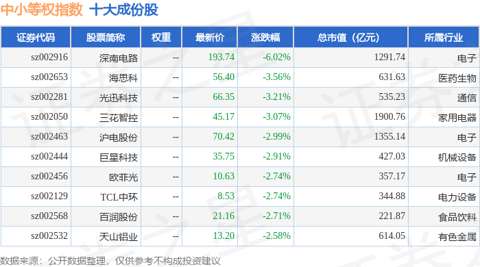中小等权(399634)指数十大成份股详情如下:
