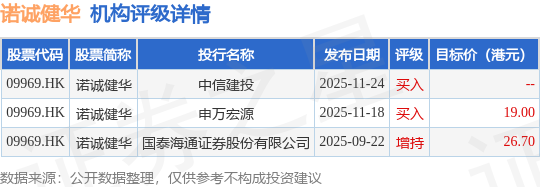 截至2025年12月11日收盘,诺诚健华(09969.HK)报收于13.58港元,上涨0.15%,成交量339.1万股,成交额4591.14万港元。投行对该股的评级以买入为主,近90天内共有2家投行给出买入评级,近90天的目标均价为22.85港元。中信建投最新一份研报给予诺诚健华买入评级。
