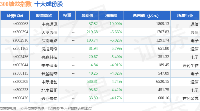 证券之星消息,12月11日,300绩效(399657)指数报收于7019.81点,跌1.21%,成交3644.37亿元,换手率1.33%。当日该指数成份股中,上涨的有47家,迈为股份以12.82%的涨幅领涨,下跌的有251家,中兴通讯以10.0%的跌幅领跌。