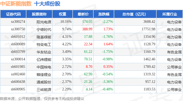证券之星消息,12月11日,中证新能(399808)指数报收于2761.72点,跌0.42%,成交998.59亿元,换手率1.43%。当日该指数成份股中,上涨的有26家,迈为股份以12.82%的涨幅领涨,下跌的有53家,罗博特科以8.15%的跌幅领跌。