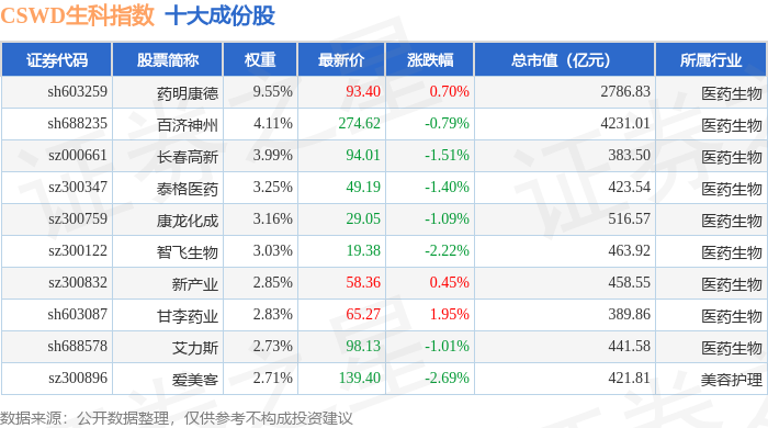 资金流向方面,CSWD生科(399993)指数成份股当日主力资金净流出合计9991.24万元,游资资金净流入合计3928.69万元,散户资金净流入合计1.35亿元。成份股资金流向详情见下表: