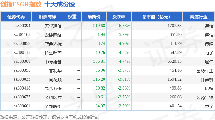 创指ESGR(470028)指数十大成份股详情如下:
