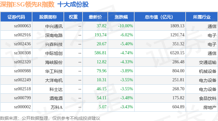 深指ESG领先R(470029)指数十大成份股详情如下: