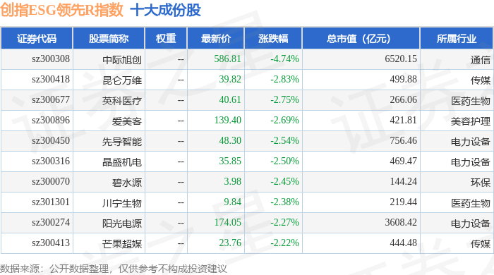 创指ESG领先R(470031)指数十大成份股详情如下: