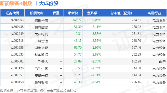 近10日内新能装备R(470043)指数成份股做了调整,新纳入了1只股票,剔除了1只股票。